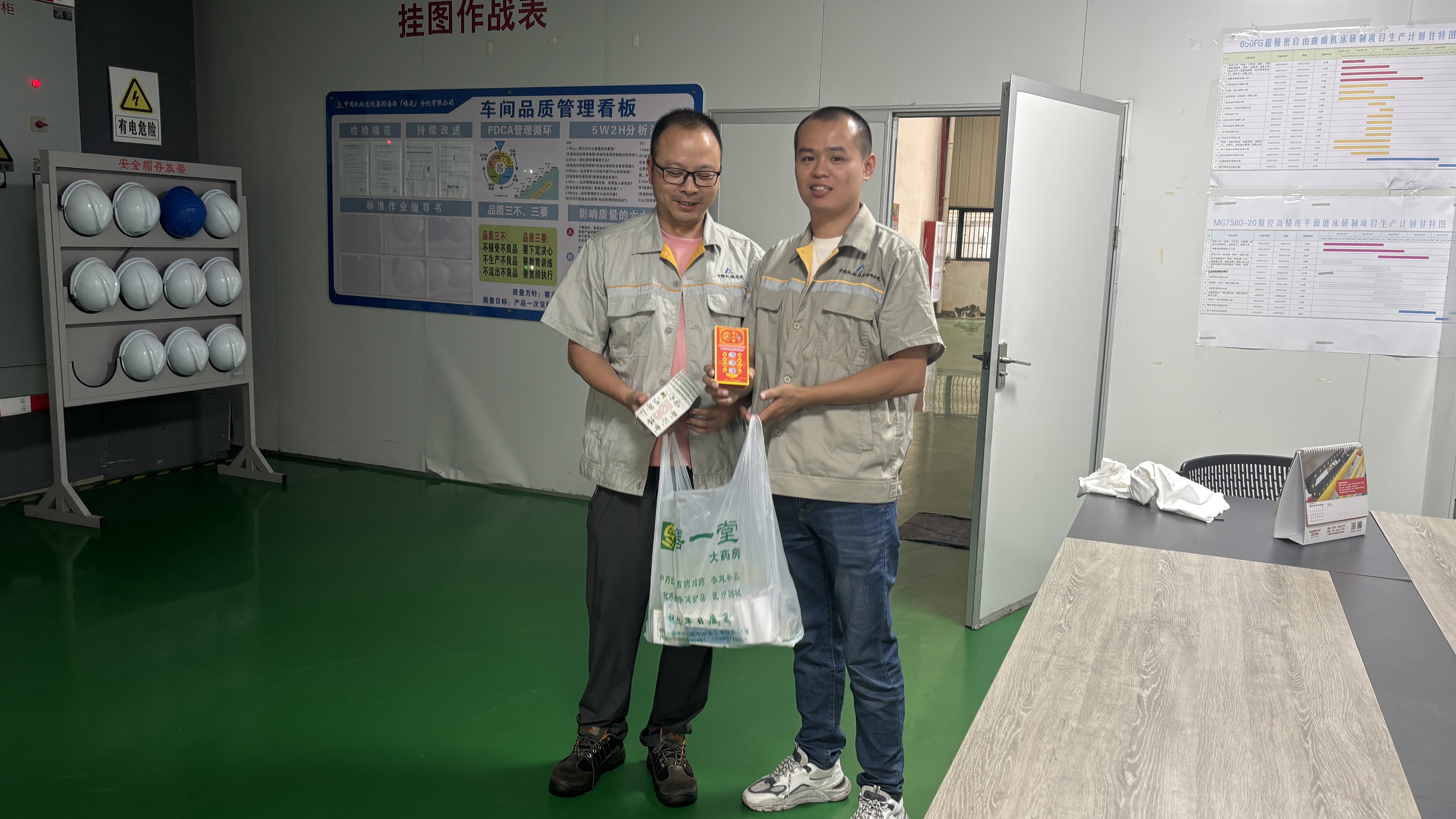 在生產(chǎn)車間品質(zhì)管理看板前,分院精心籌備的應急藥品包逐一送到員工手中,涵蓋防暑降溫、常見傷病治療等藥品。拿到藥品的員工們臉上洋溢著笑容,感受到公司實實在在的關懷。在車間、在辦公室,大家相互分享這份喜悅,“公司時刻想著我們,干活更有勁兒了!”一位員工質(zhì)樸的話語,道出了眾人的心聲。